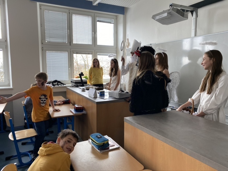 V České republice sice nic takového neděláme, ale to neznamená, že si podobnou parádou nemůžeme zpestřit školní den. Obzvlášť, když je to první den po podzimních prázdninách. Školní parlament již předem vyhlásil na druhém stupni soutěž o nejlépe vyzdobenou třídu. Sice se nezapojily všechny třídy, ale ty, které ano, to vzaly velmi pečlivě. Naši žáci nelenili a své třídy proměnili v hrůzostrašná doupata plná pavučin, duchů a jiných příšerností.